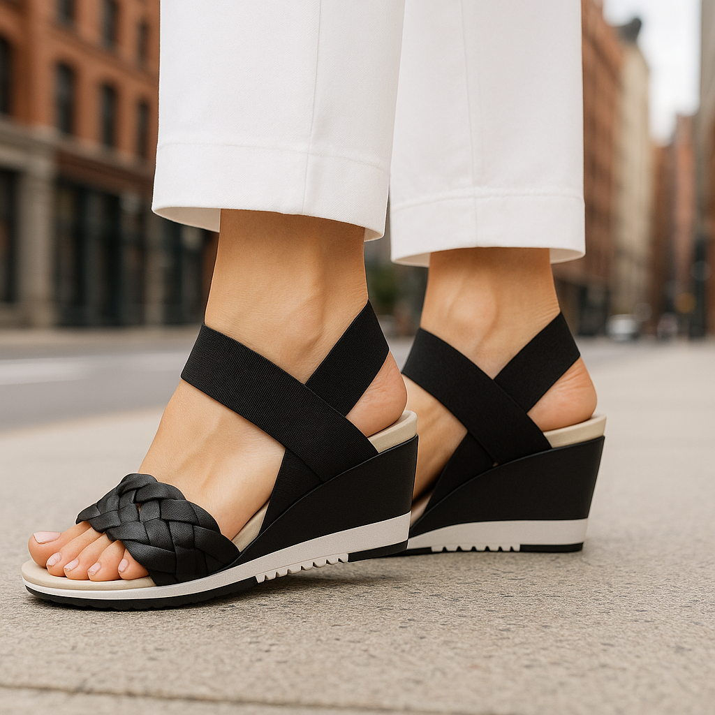 Sandale anti-transpirante compensée ultra-confortable avec double bride élastique pour femmes (DRY-TECH)