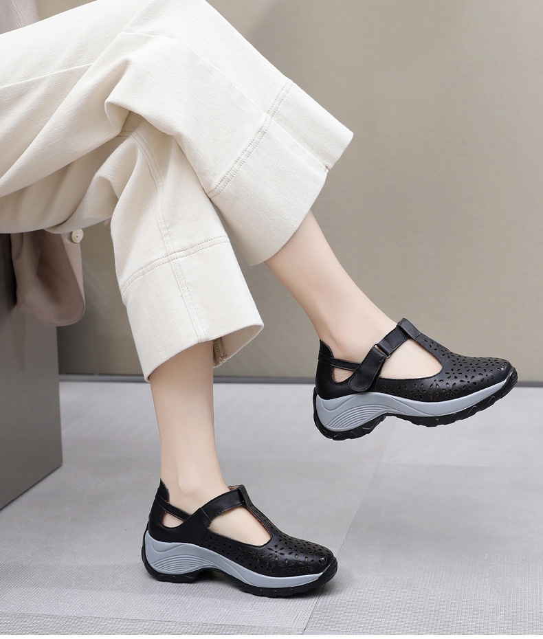 Alliant élégance intemporelle et confort au quotidien, ces chaussures pour femme à talon compensé sont idéales pour celles qui recherchent un bon maintien sans renoncer au style. Leur design ajouré moderne et leur conception ergonomique en font un choix parfait pour un usage quotidien, au travail comme lors des sorties.